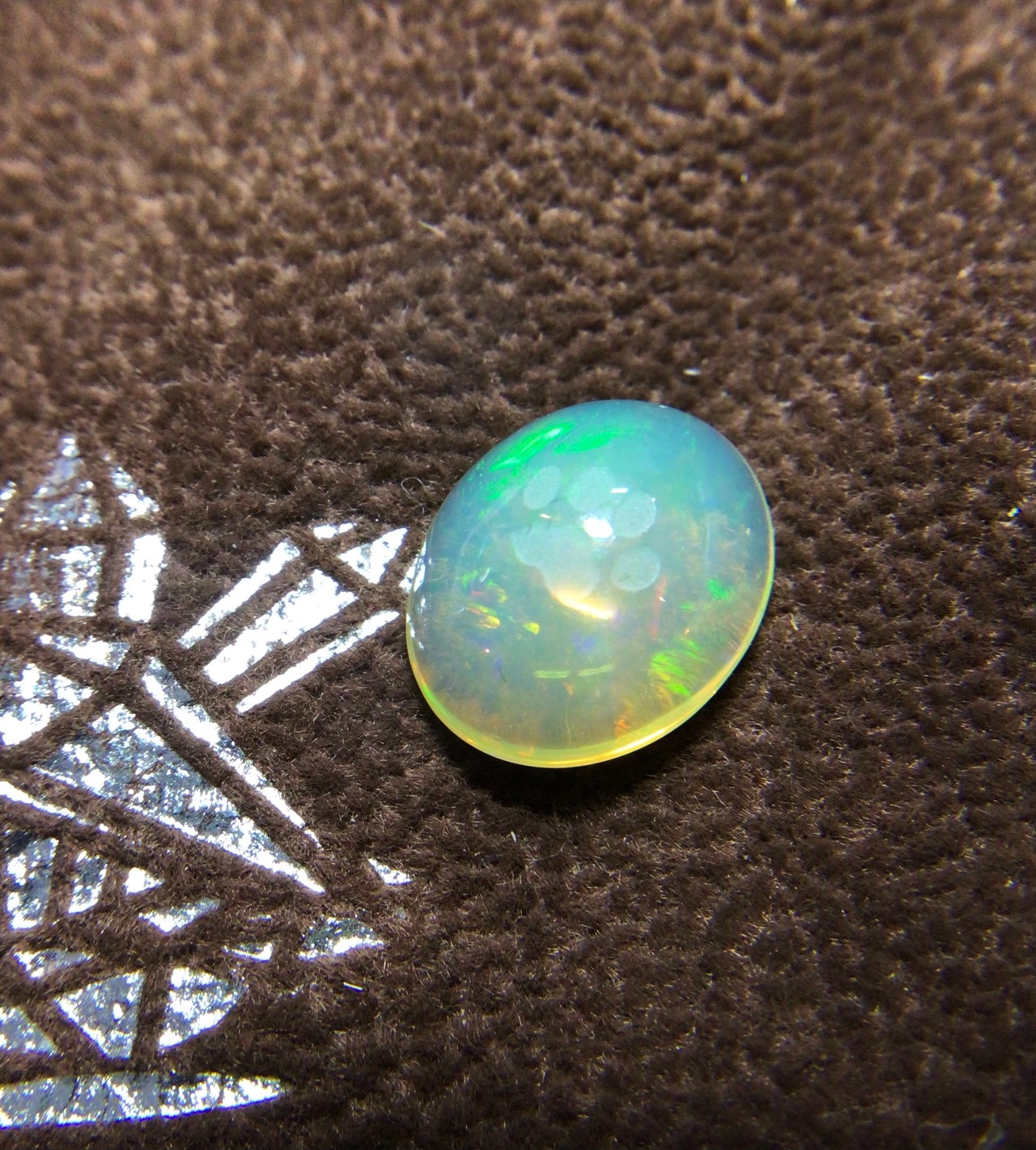 こちらはオパールの上部に肉球が彫刻されております。底面から見て頂くと彫刻が浮き出て見えるタイプです。