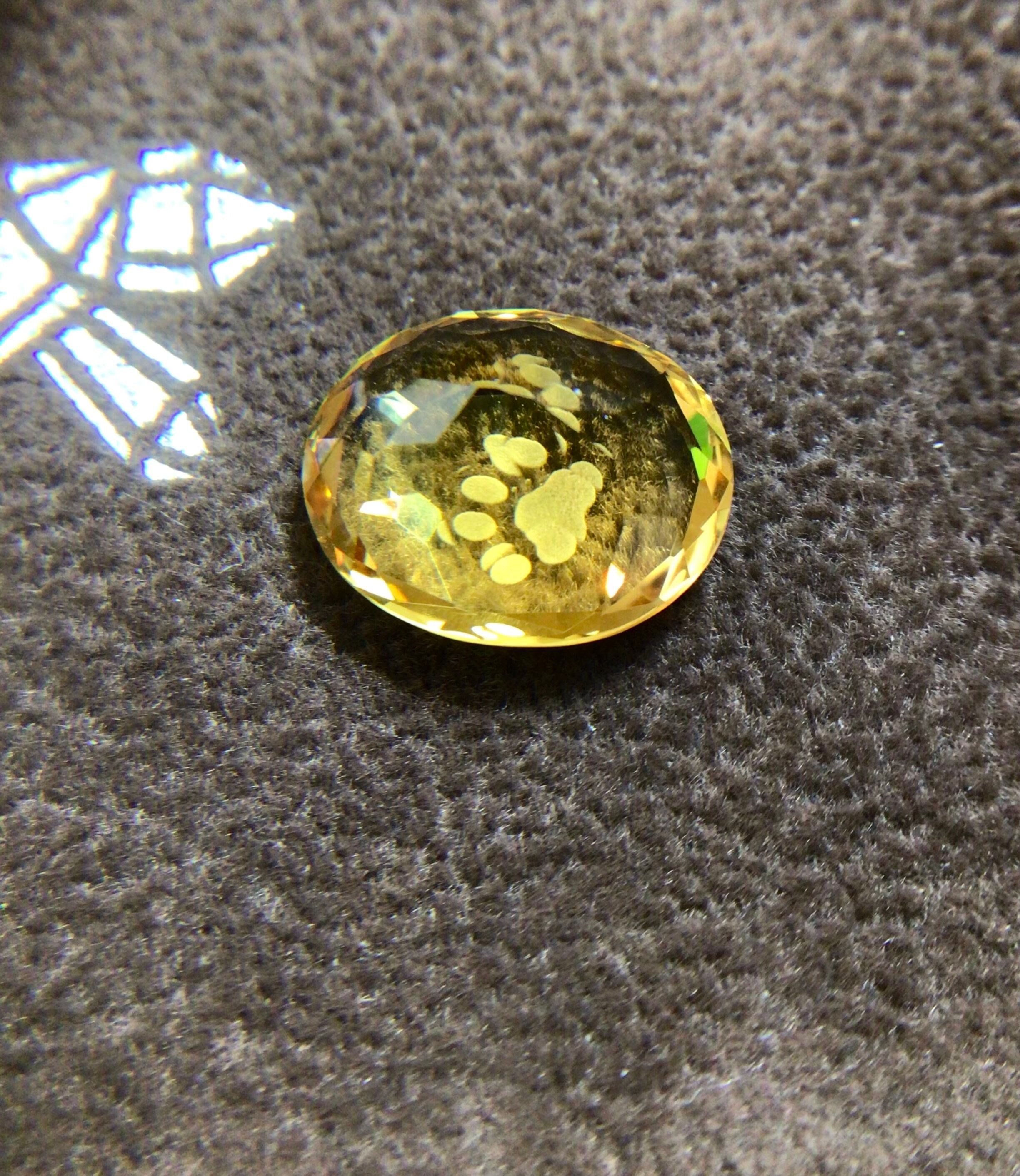 キラキラシトリンに肉球がレーザー彫刻された可愛いお品物です。