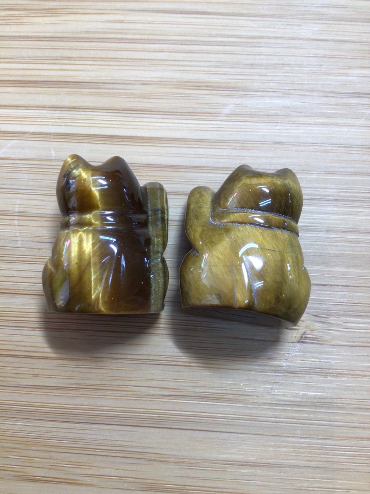 タイガーアイの可愛い仲良し招き猫ちゃん。右手挙げは金運を招き、左手挙げは人脈を招くと言われています。