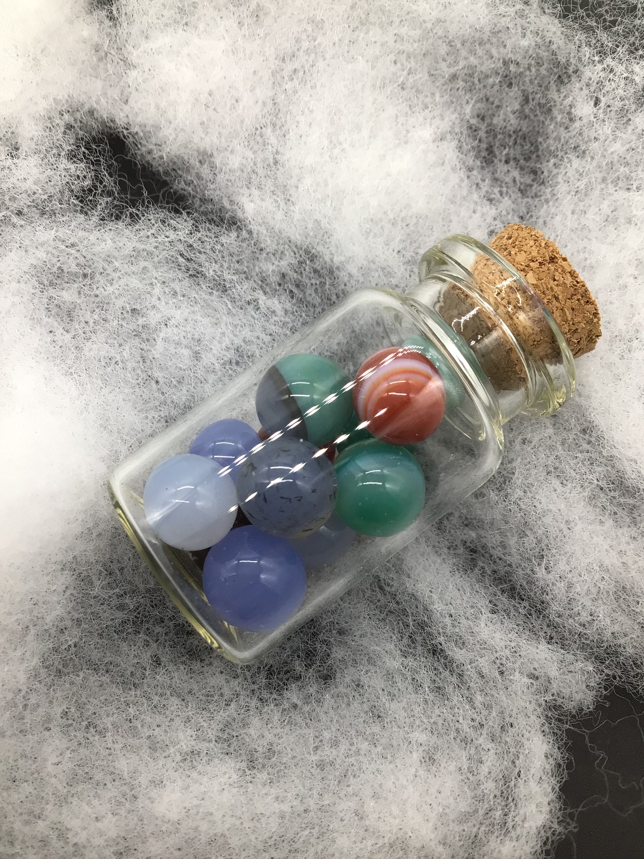 昔、甲府で着色加工されたメノウが入った瓶です。だいたいビーズの大きさは7~9ミリで、10個以上は入っております。とても可愛い丸が魅力的なお品物となります。甲府で加工された貴重ものとなりますのでこの機会にぜひ…