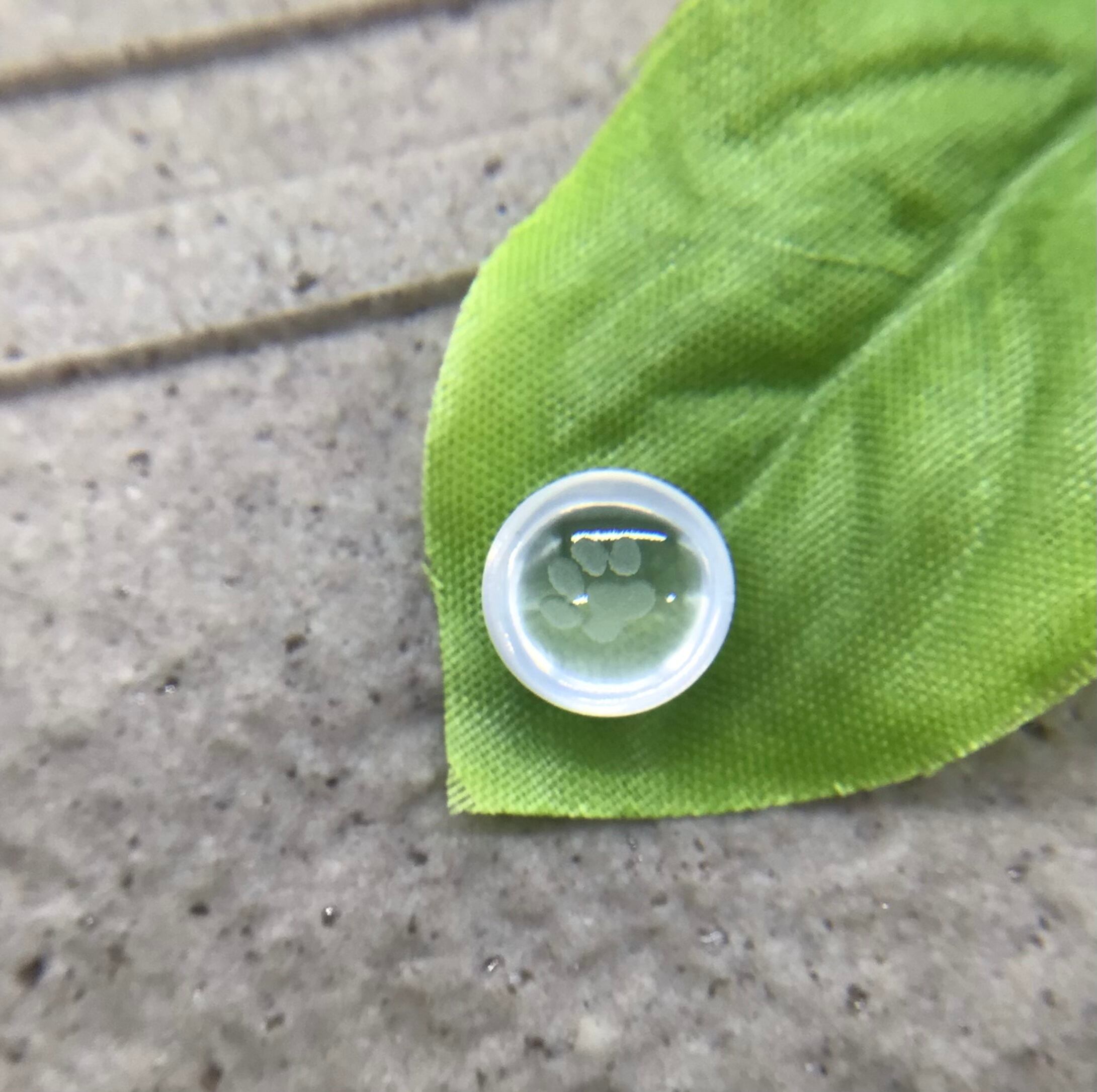プリプリのローズクォーツのルースに可愛い肉球をレーザー彫刻しました!