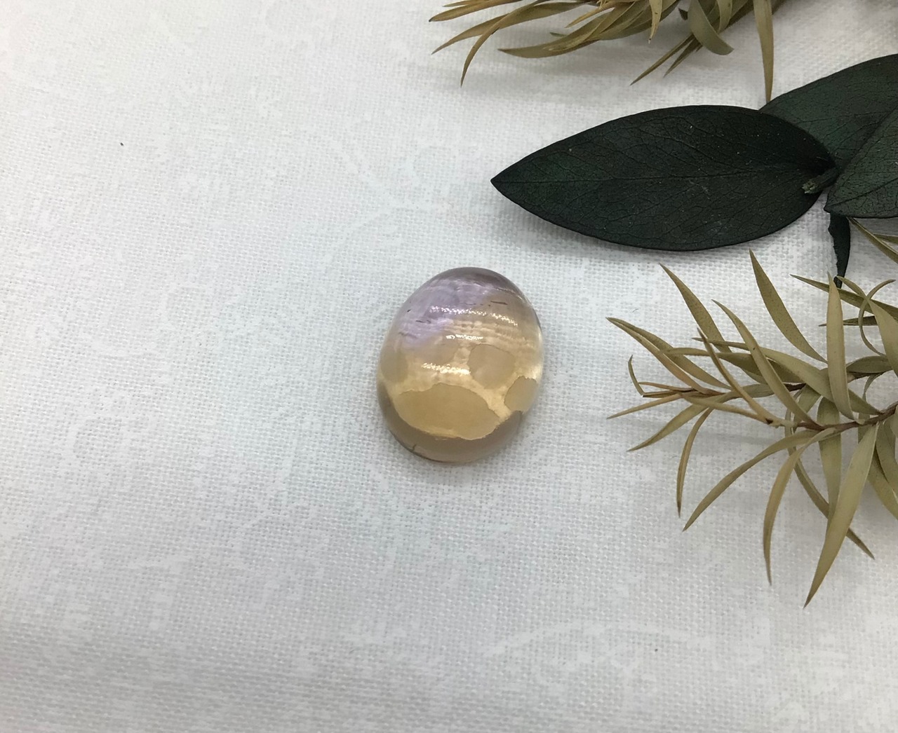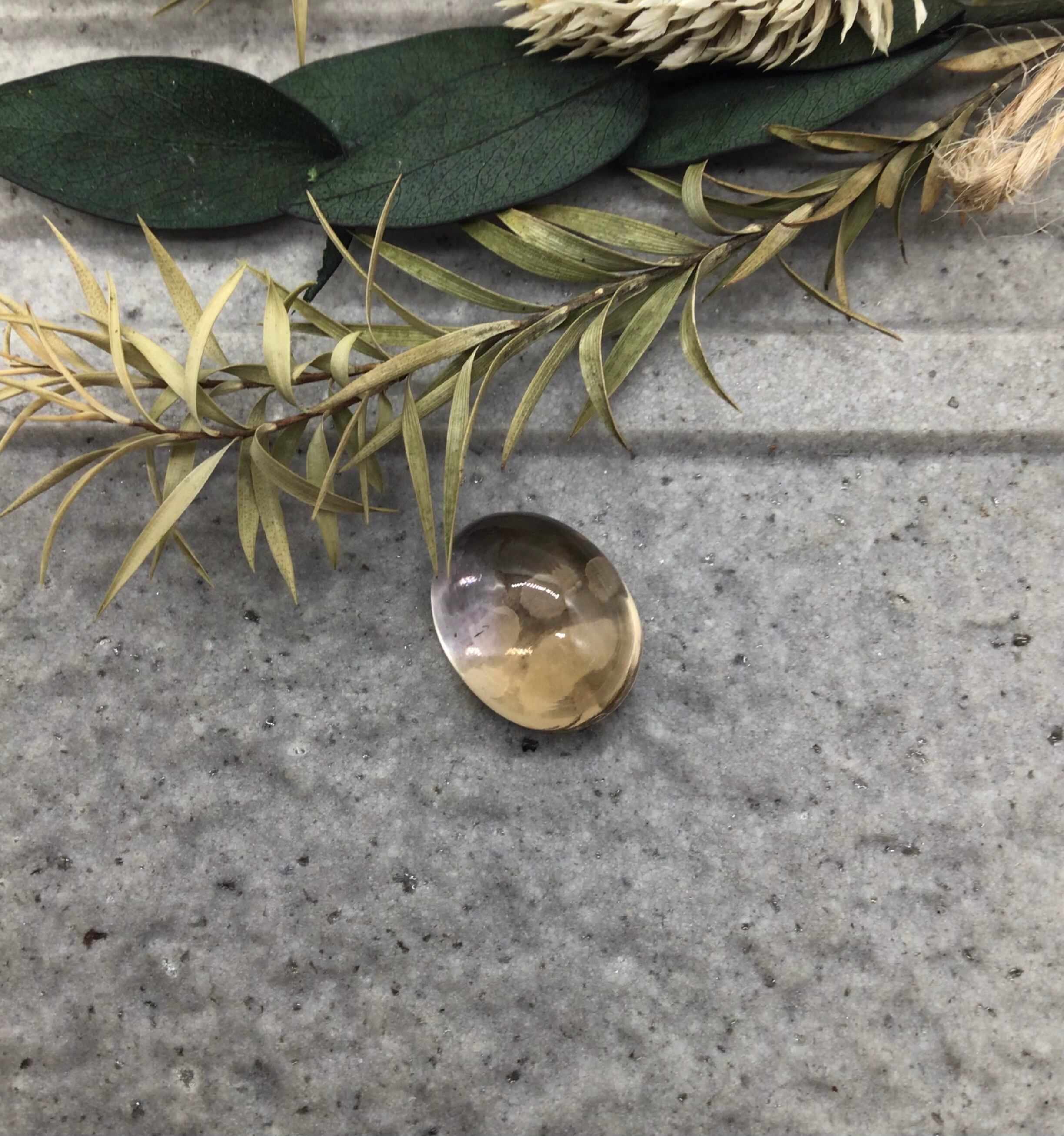ぷっくりとした透明度の高い当店のアメトリンのルースに可愛い肉球がレーザー彫刻されております。