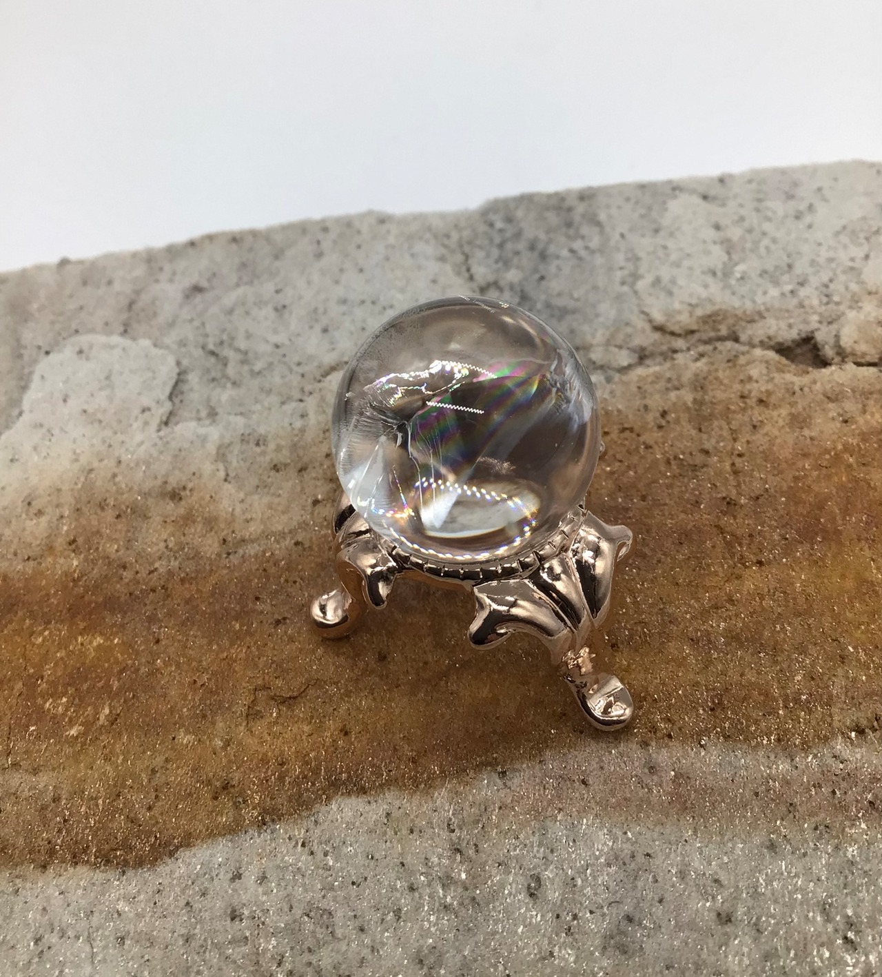 甲府職人製作 アイリスクォーツ丸玉(ピンクゴールド台付)