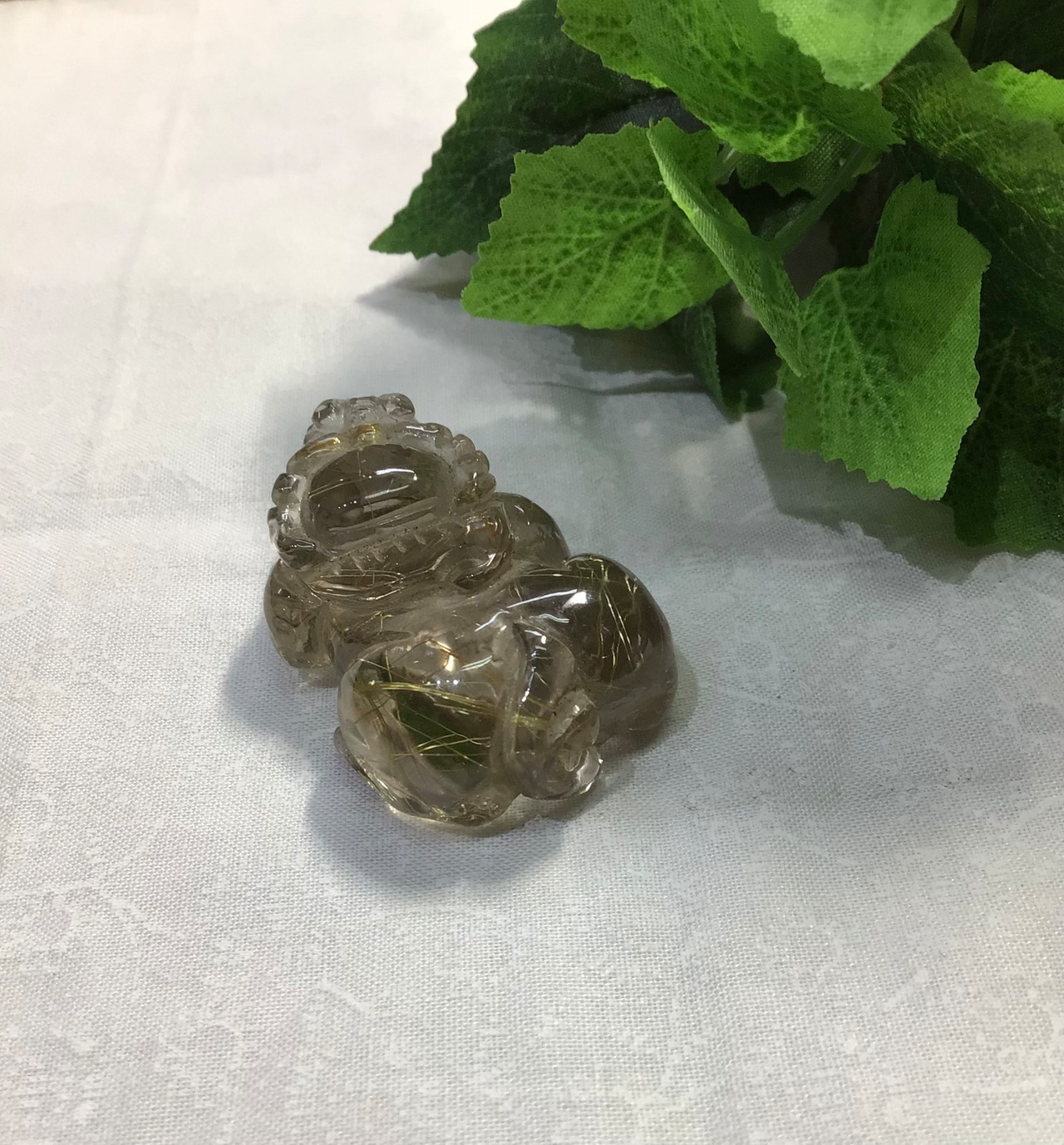 ルチルクオーツの貔貅です。貔貅は伝説上の猛獣です。中国では古くから財運の象徴として知られています。また、貔貅はお金を食べると言われ、お尻の穴がない事から、蓄財のお守りとしても大切にされているようです。